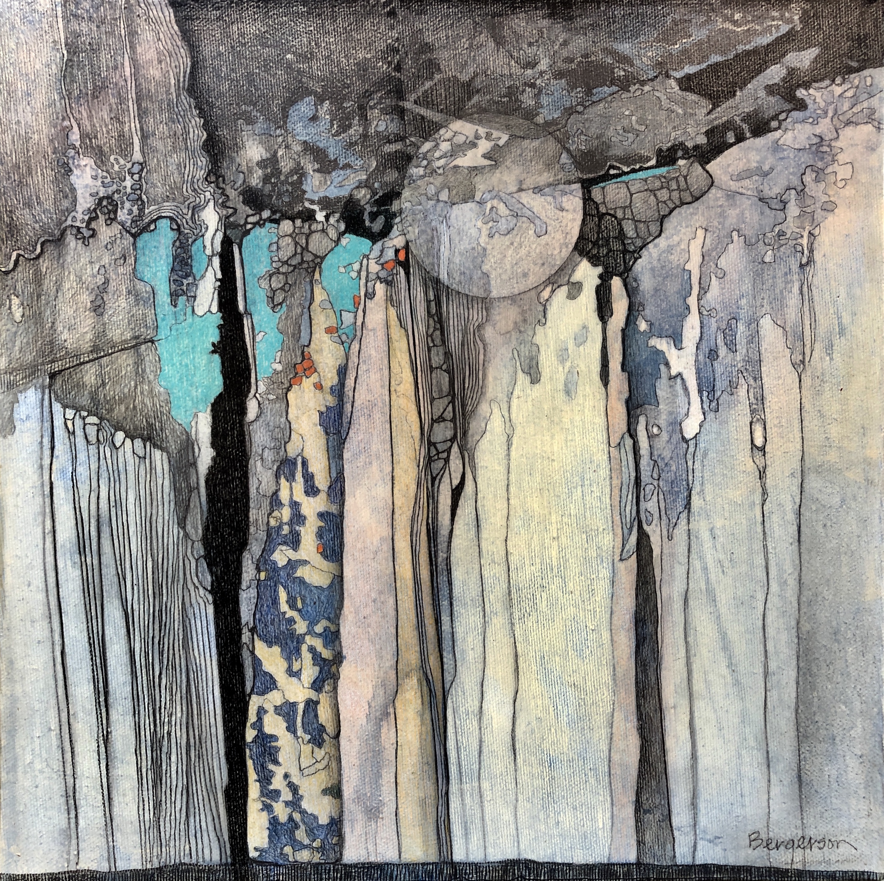 acrylic/graphite/Stabilo 8008/colored pencil on 12″x 12″ stretched canvas