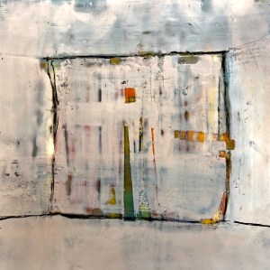 It is a fascinating process, but in 5 days I was primarily consumed with trying to master the process/techniques of working with hot wax. I made some progress, but have a LONG, LONG way to go. The following are in progress experiments which I hope to complete this Fall (once I set up an area of my own studio where I can work with the encaustic materials). Each piece is 12″ x 12″.