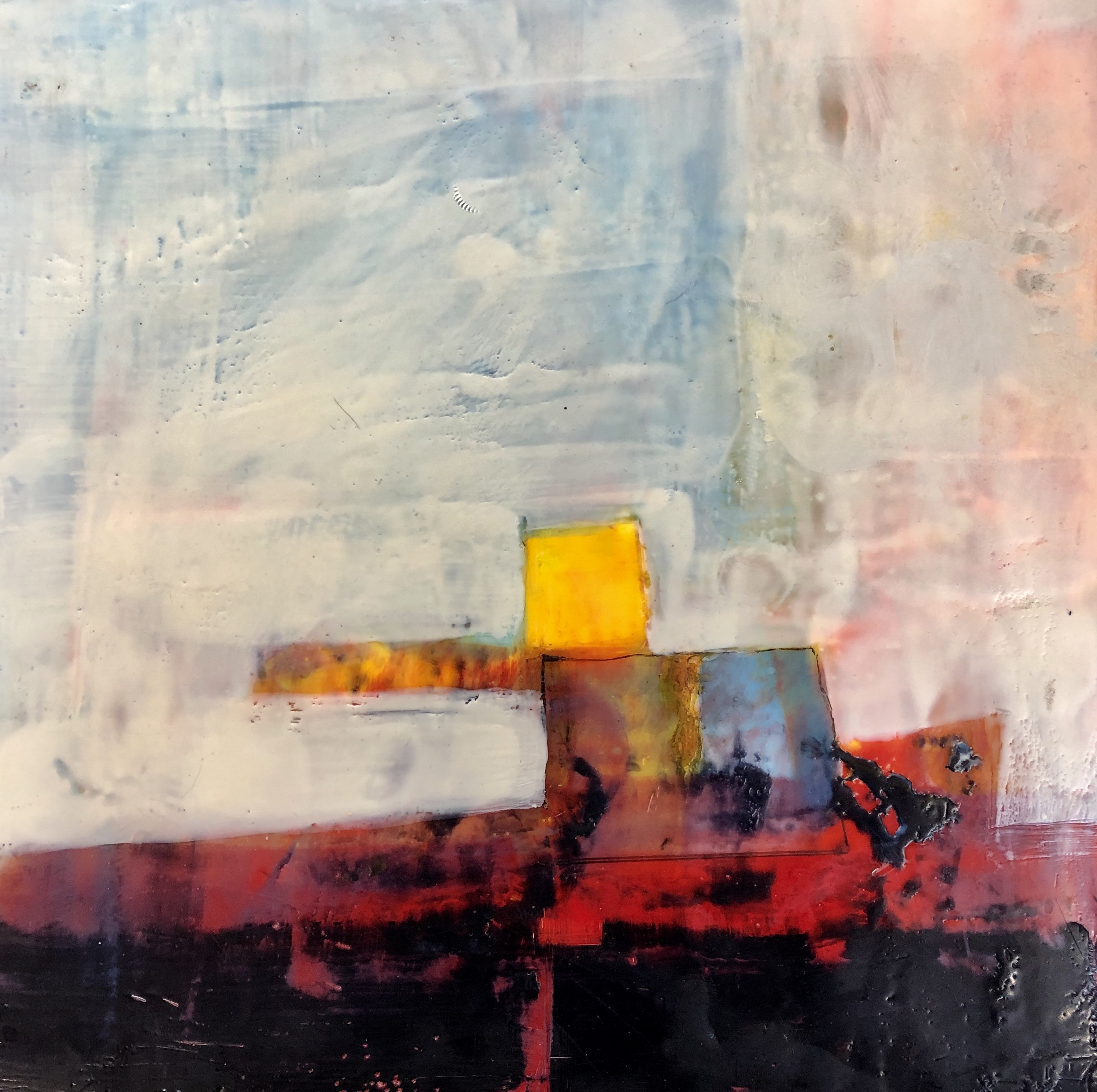 I think your encaustics are amazing as they are, truly lovely! I’ve done some work with encaustics and tend to spend too much time worrying about air bubbles, I’d be happy to call any of these my own! Also love how abstract they are!