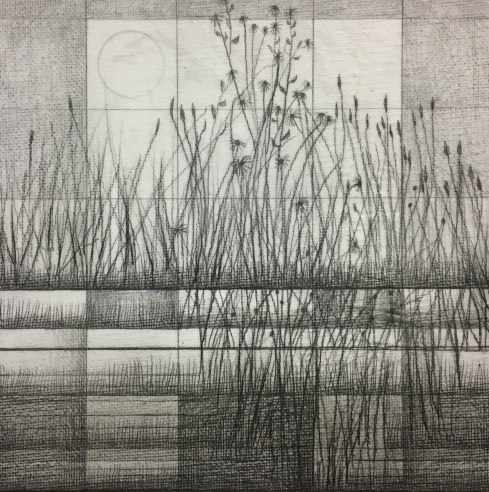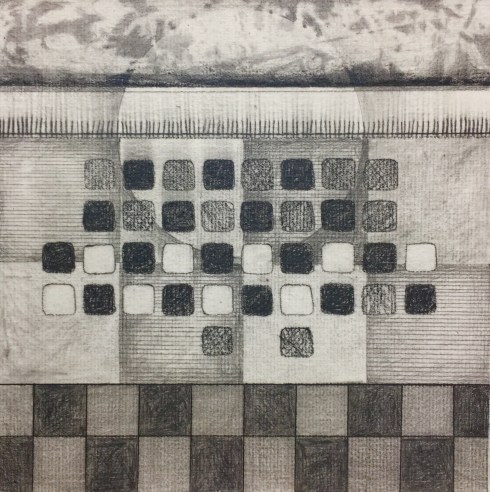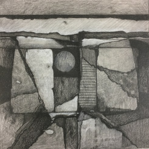7″x7″ graphite/Stabilo 808 on laid paper, collaged to 8″x8″ stretched canvas