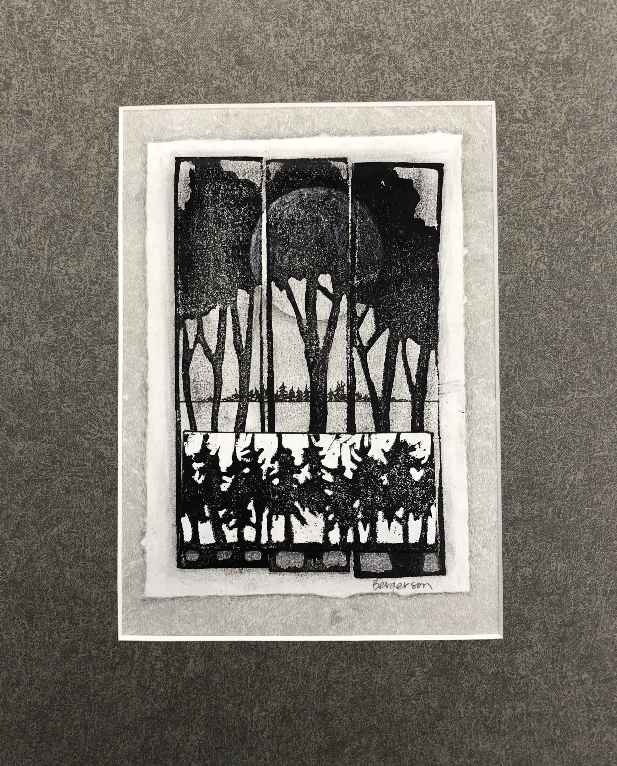 relief prints/collage/colored pencil matted to 8″x 10″