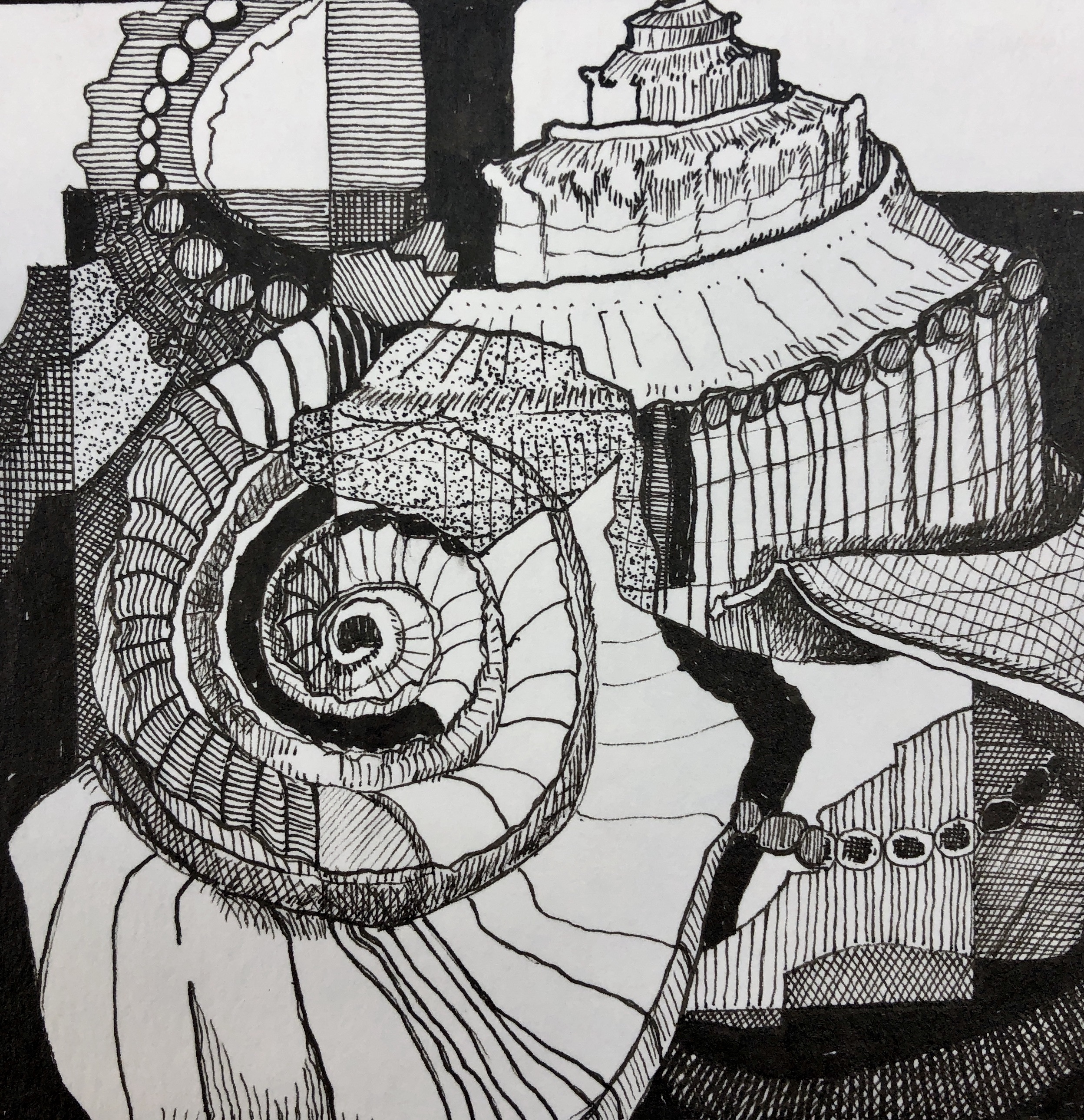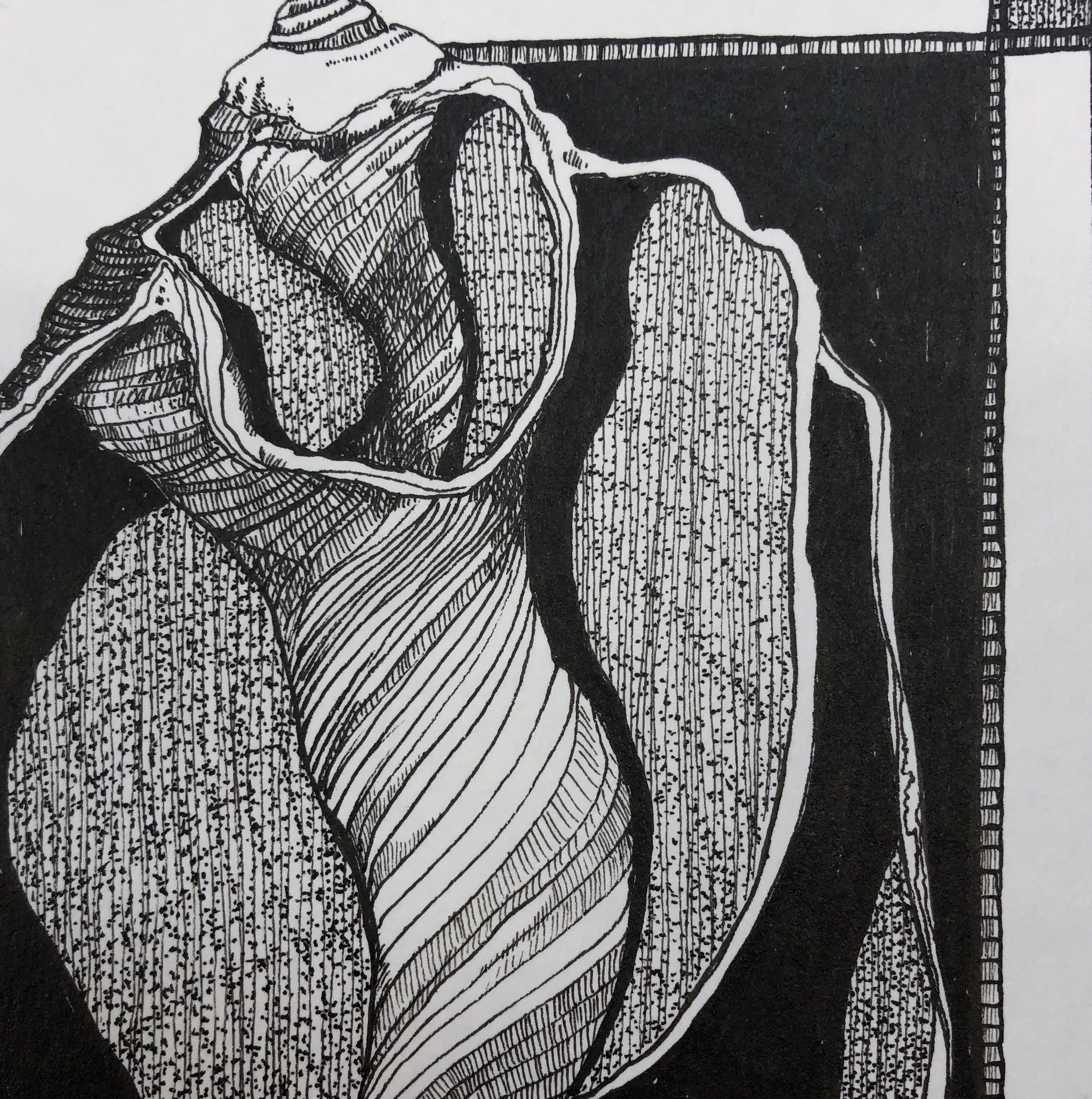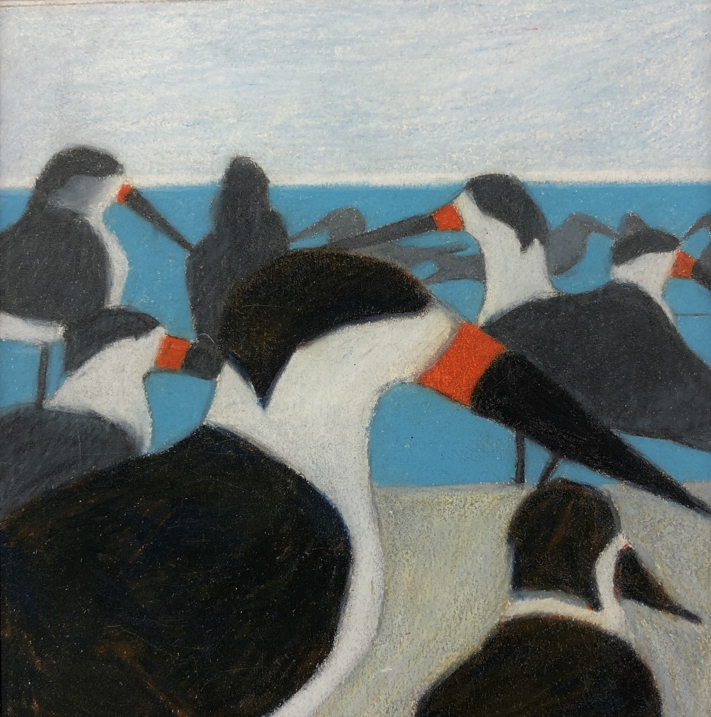 While going through some shelves in my studio (in an attempt to get organized), I came across a folder of small drawings I had done during a visit to Amelia Island, all inspired by the beach and the glorious ocean. Each drawing is 4″x 4″. Pen and ink or Neocolor 1 crayon.