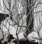 For these pieces, I began with a pen and ink drawing of trees on the shore of Lake Superior. I had the drawing reproduced, then cut, pasted, drew on, and reconfigured the elements to create new compositions on 5″x 7″ boards. Very fun and very relaxing. These are just a few of the ones I have completed thus far, with plans to do more, as each one suggests ideas for another.