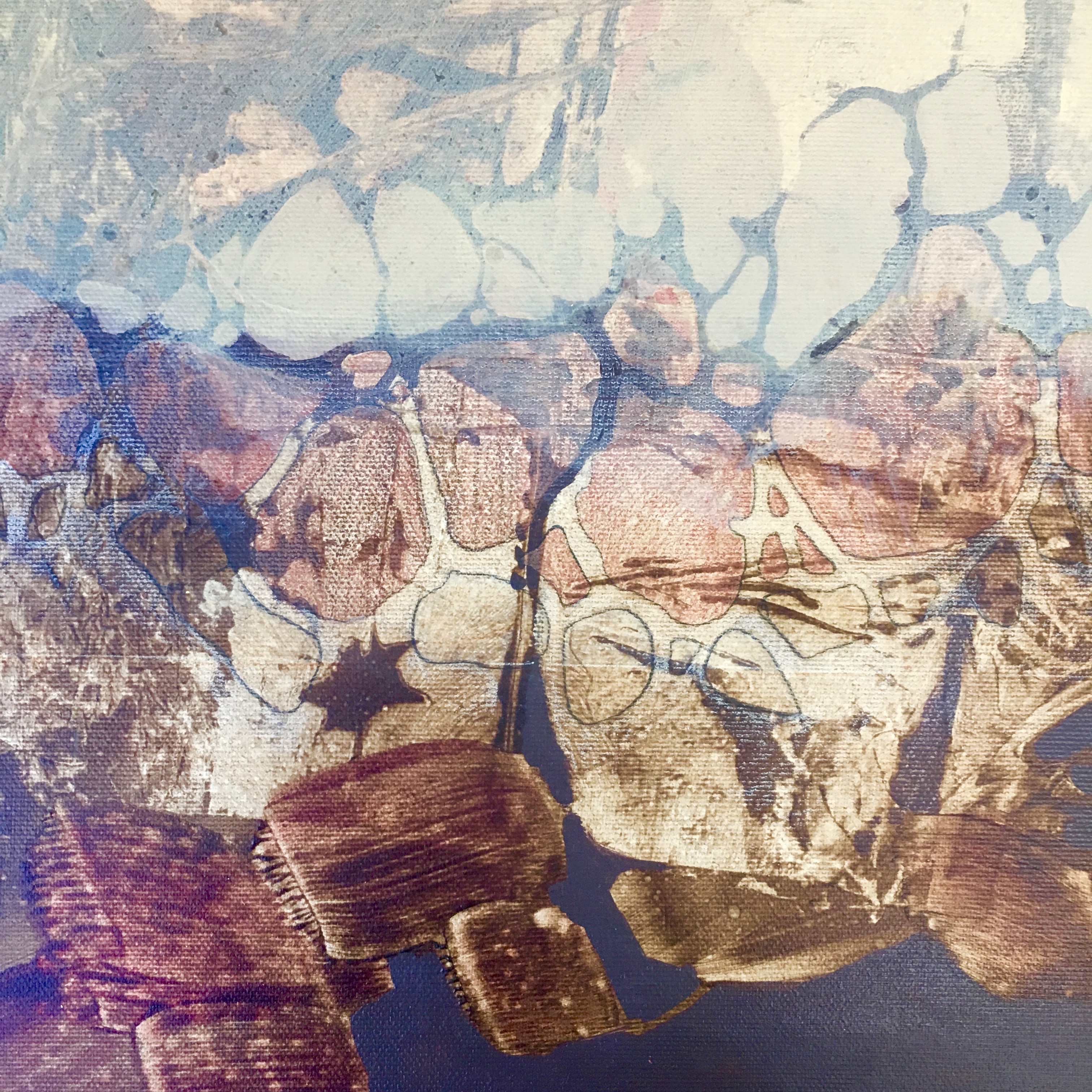 Yesterday was one of those particularly exhilarating days in the studio……a day to begin new paintings. I always work on more than one piece at a time (to allow for drying times, thinking time, using up left-over cups of paint, to be able to try out an inspiration that comes to me while working on one painting to another piece), and I am ready to add to the MINDSCAPE series and begin a new series of small river-related canvasses, title to be determined. 16 new beginnings, no rules (except for the size constraints), no specific plans other that to experiment and play with the textures and the colors. I crank up the music and do my best to keep my mind open to what is happening on the canvasses, confident that I will be able to move forward to a successful conclusion with each piece. I already know, based on past experience, that some will coalesce fairly quickly, and some will develop in a somewhat orderly manner, step by step, and that some will be real, frustrating struggles. Yes, I am interested in the destination, but to me the real joy is in the journey.