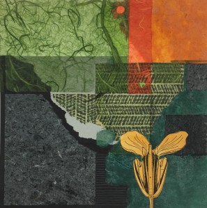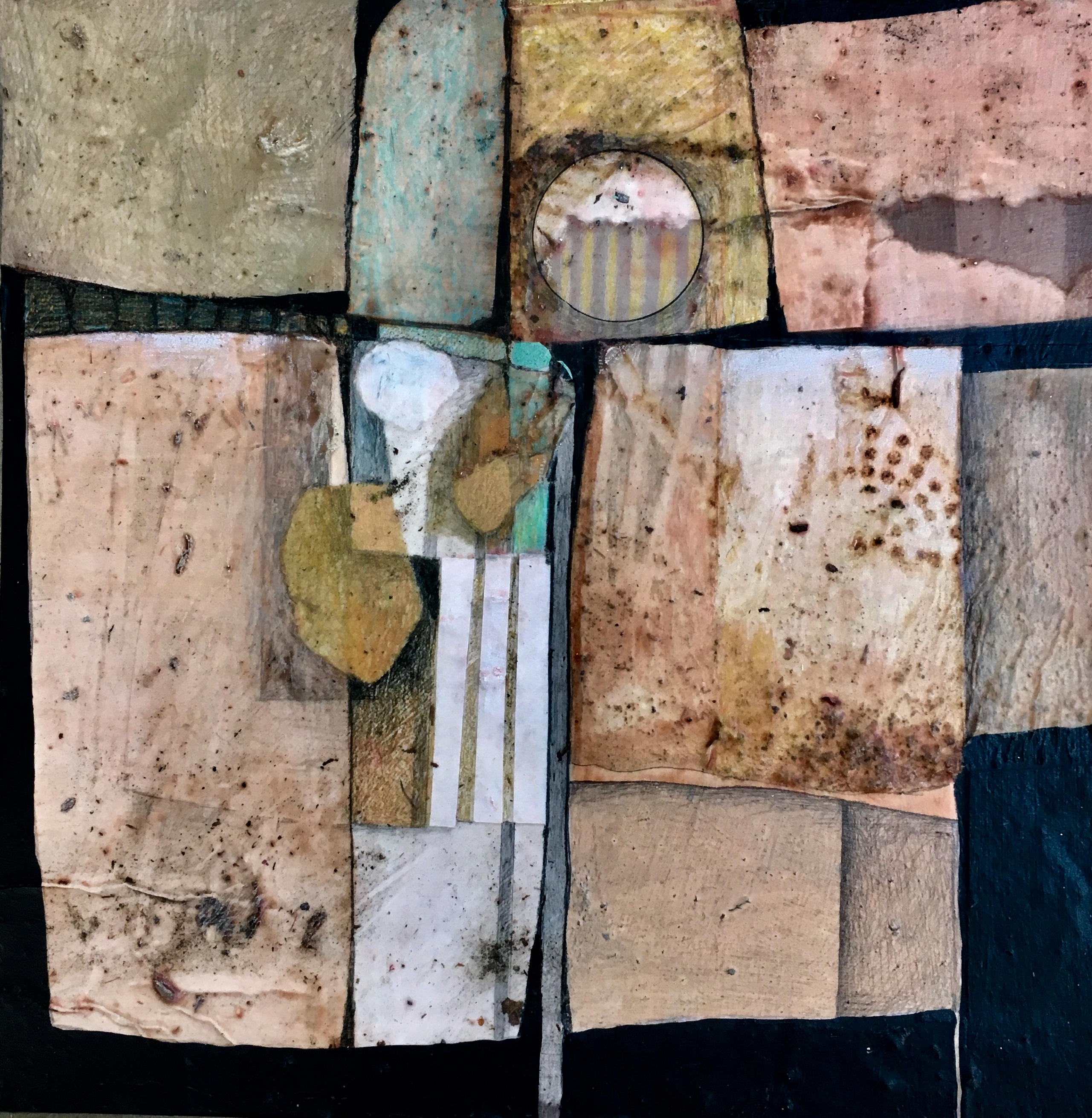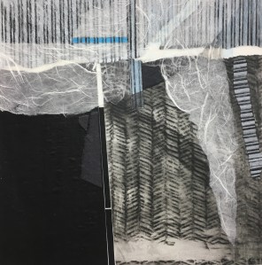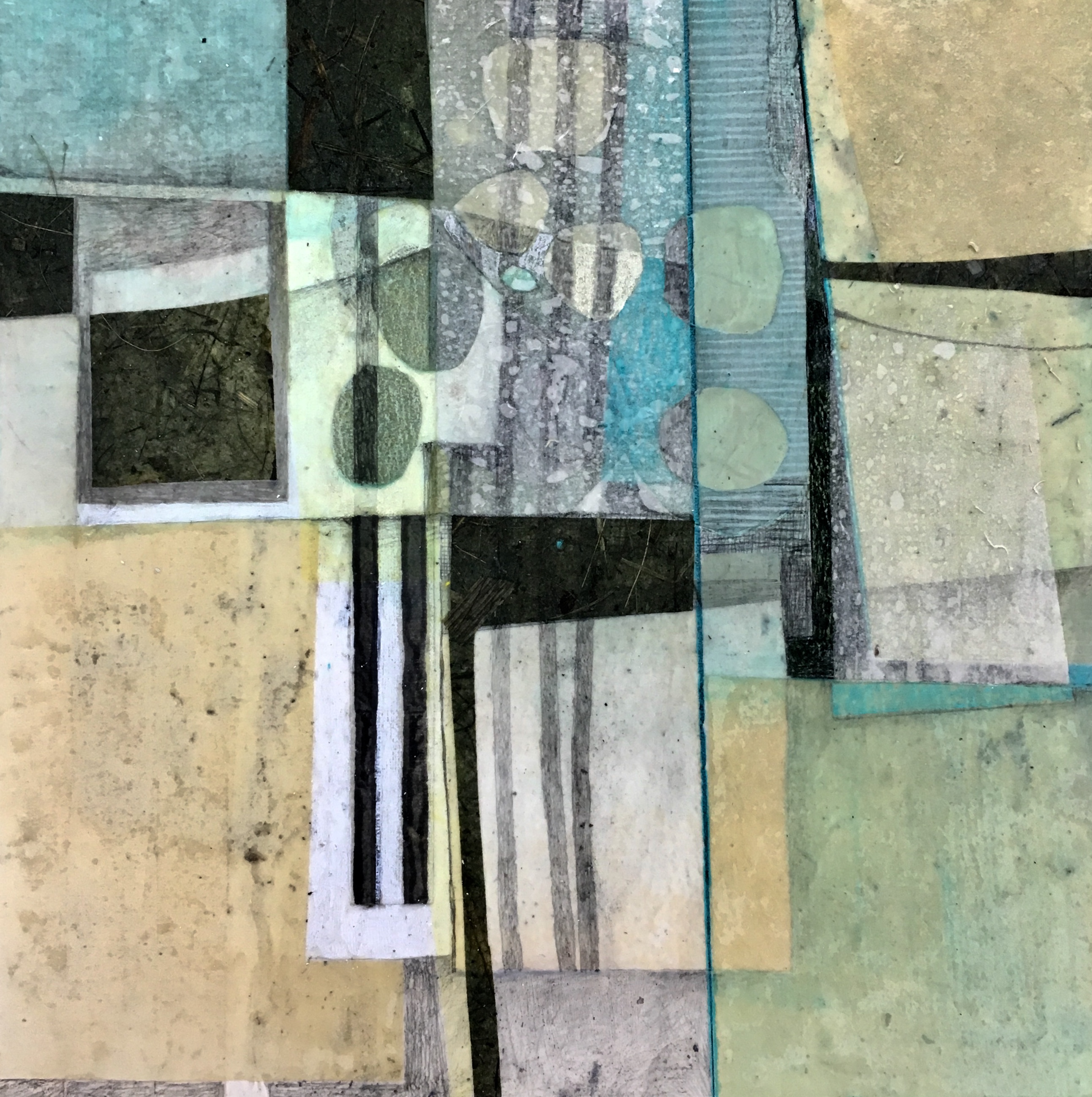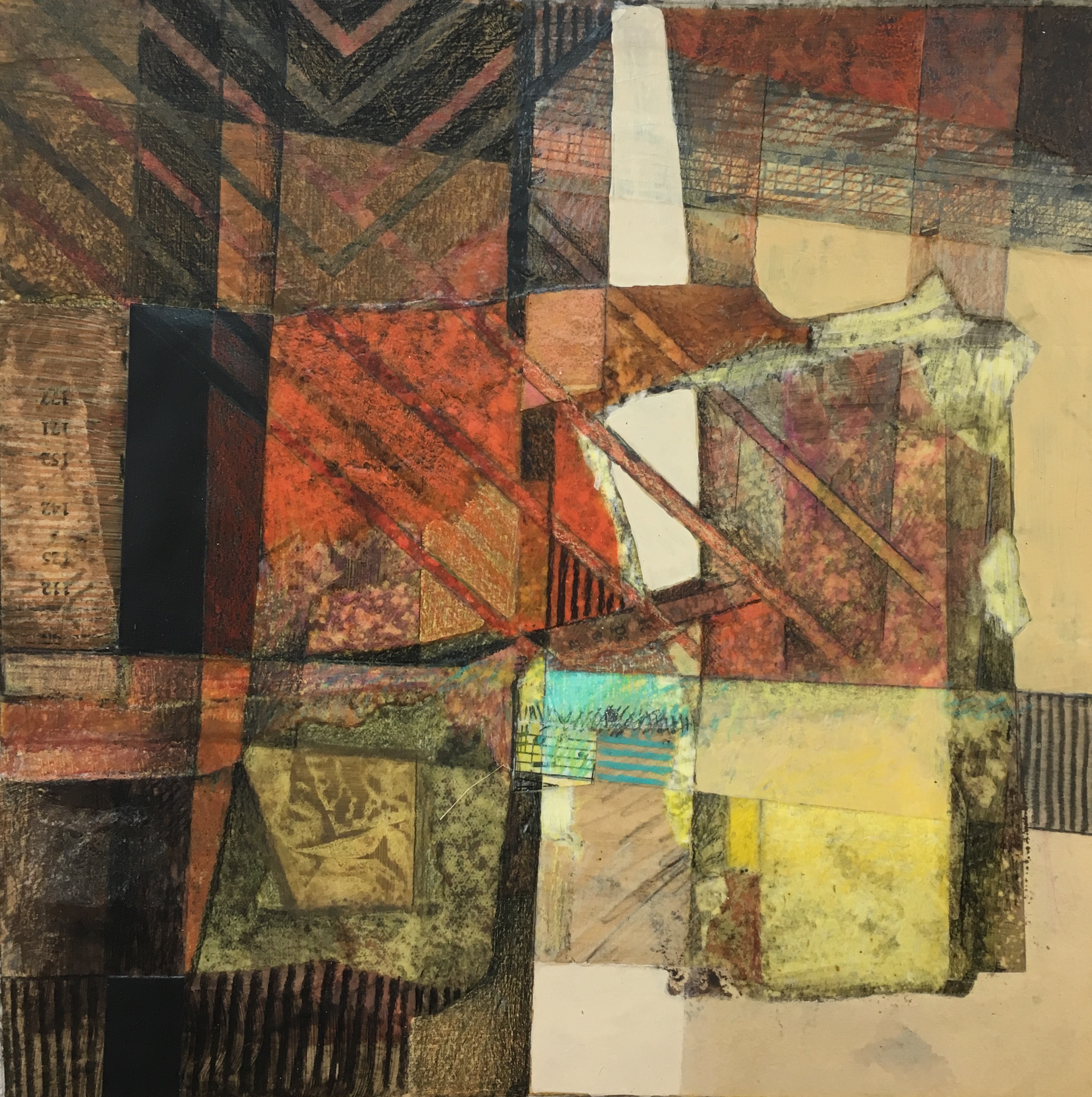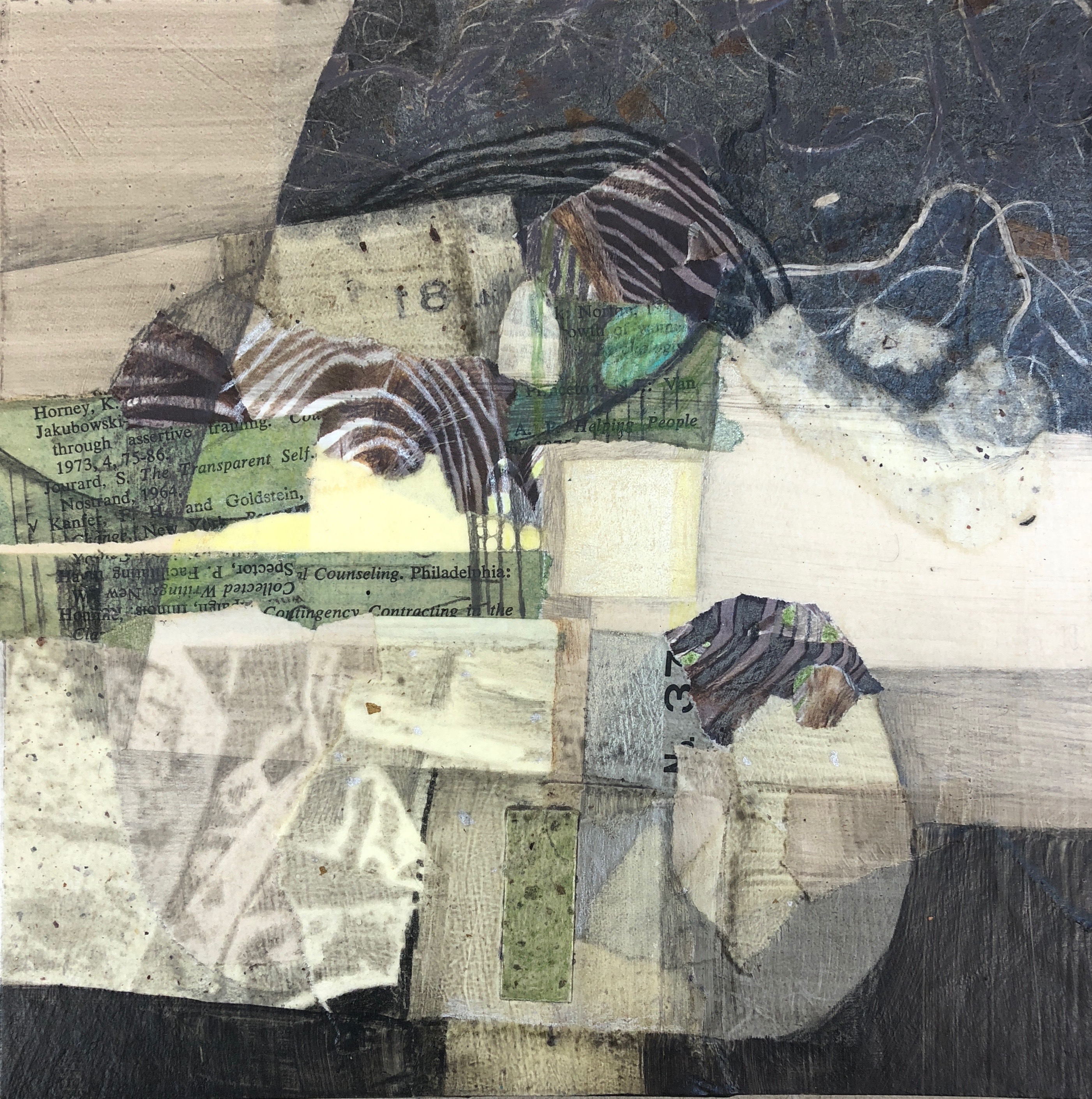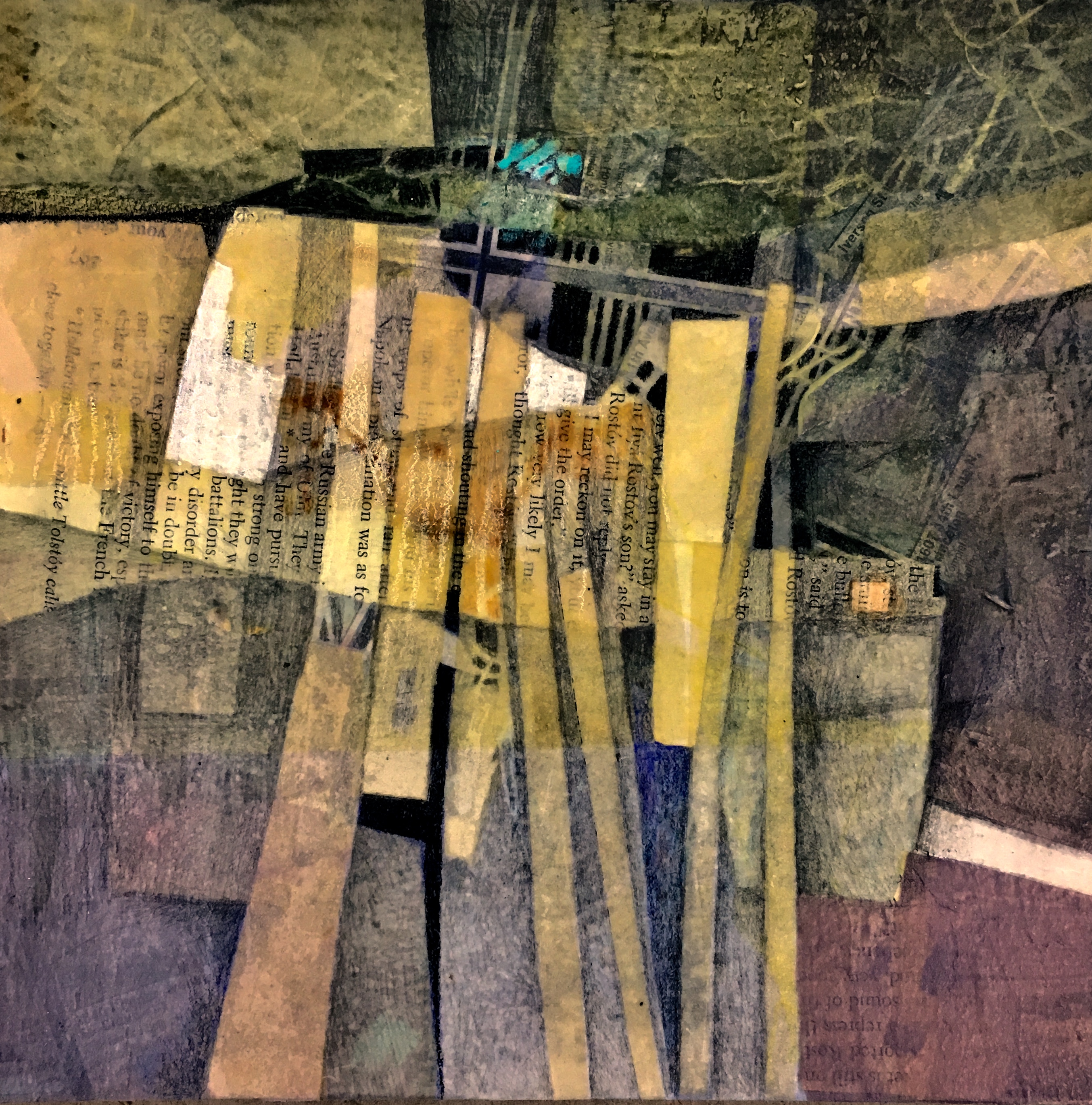 After several days spent reorganizing my studio (which caused me to become reacquainted with my extensive collection of papers….I’m a collage material hoarder), I have decided to embark upon a Weekly Collage Project. I am still not over my fascination with square compositions, as evidenced by recent series: Mindscapes (12×12), Weekly Drawings (7×7), Equilibrium series (5×5), Midnight Grove series (8×8), Blue Horizon series (12×12). Not surprisingly, I have again chosen the square format. The weekly collages are 8″x 8″, on mat board or illustration board.