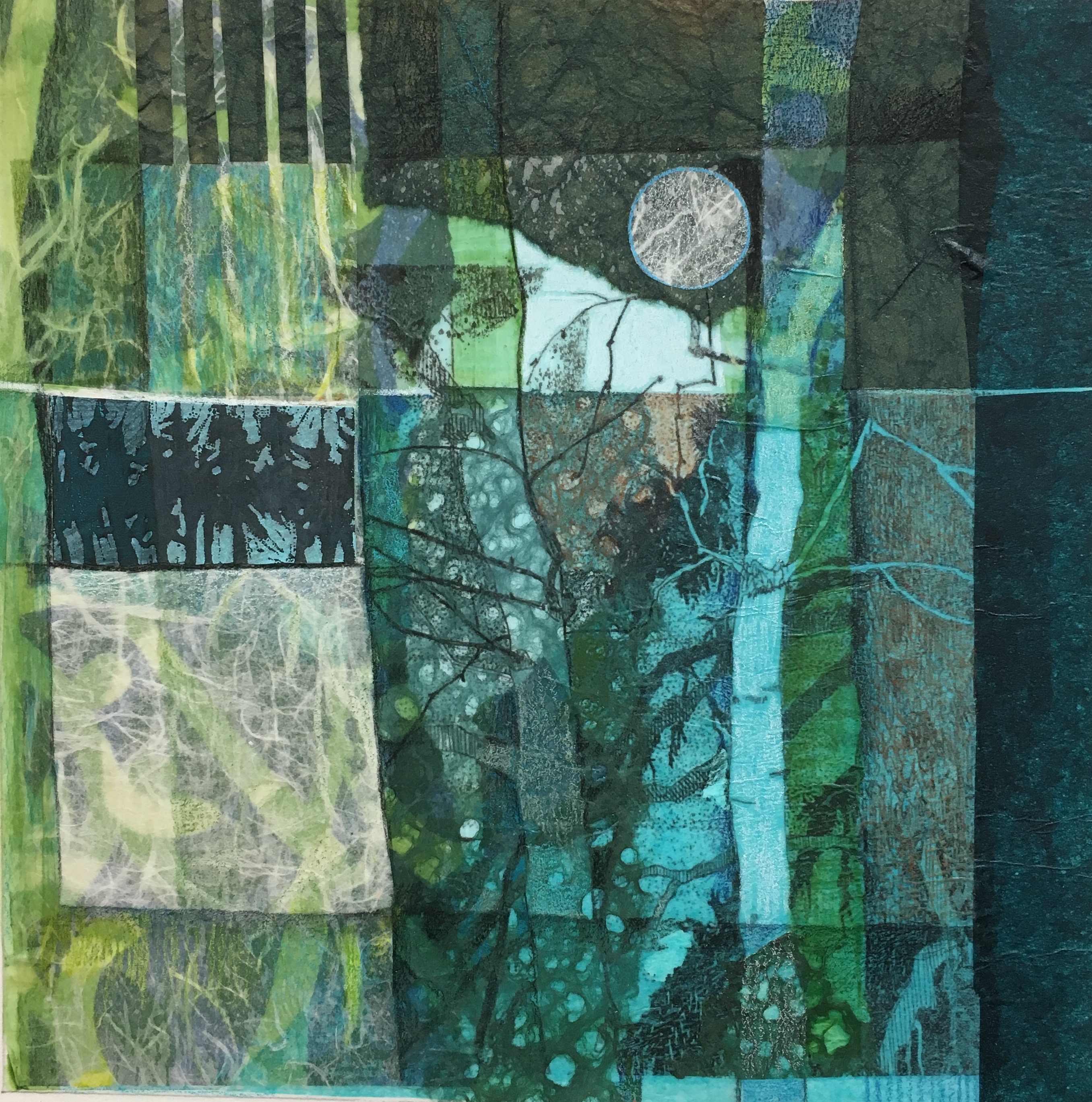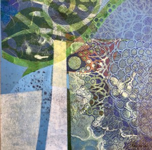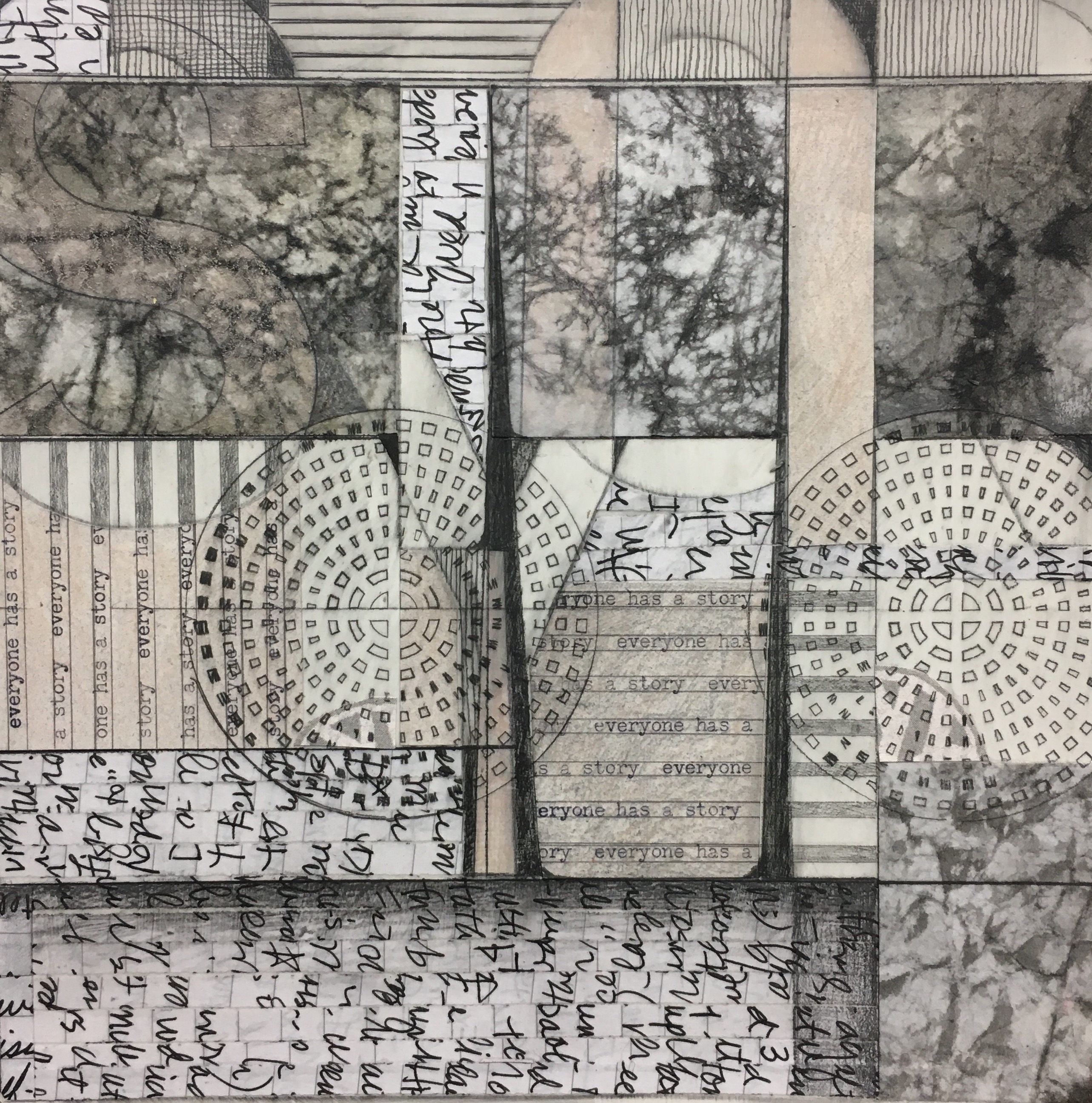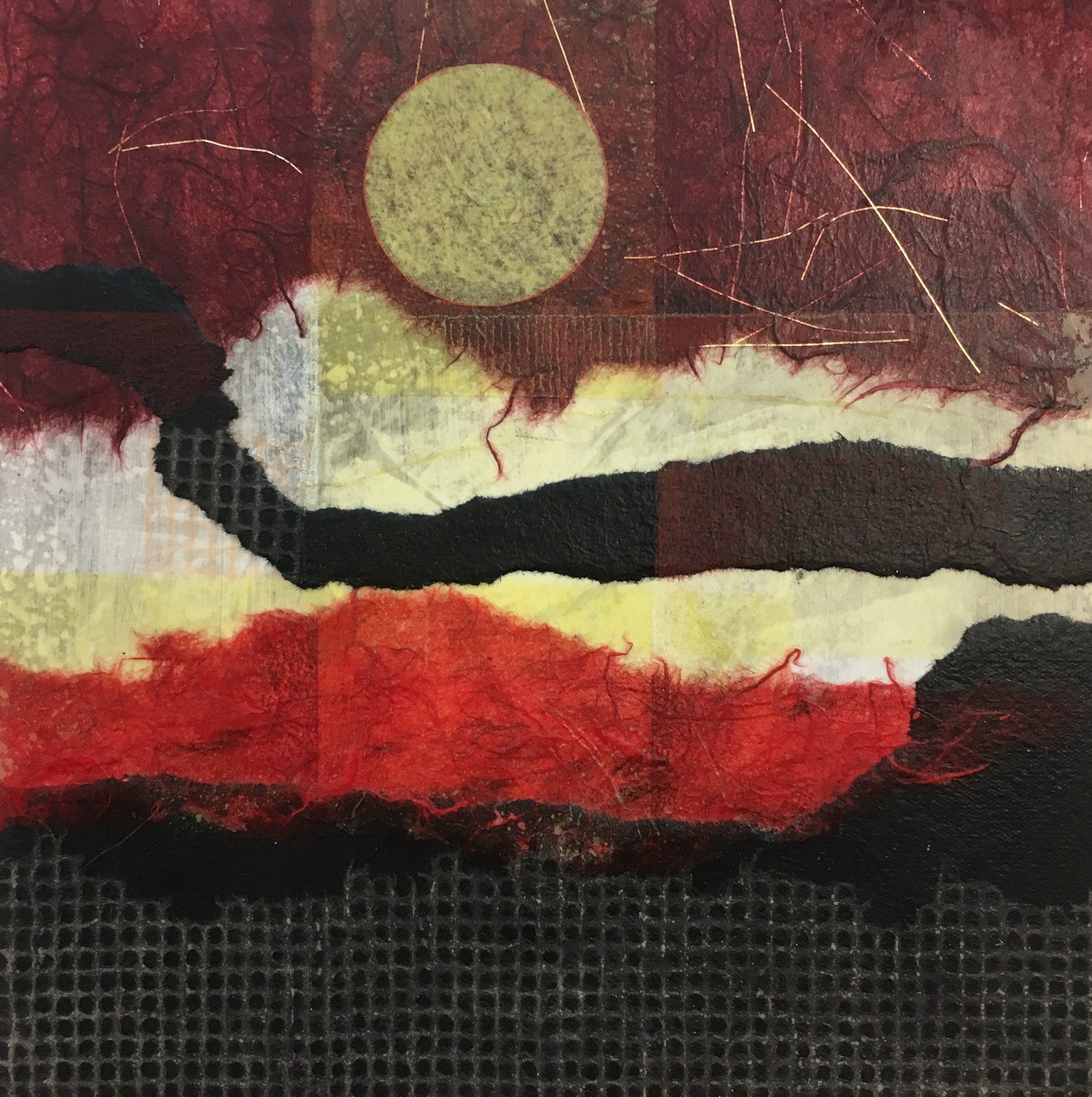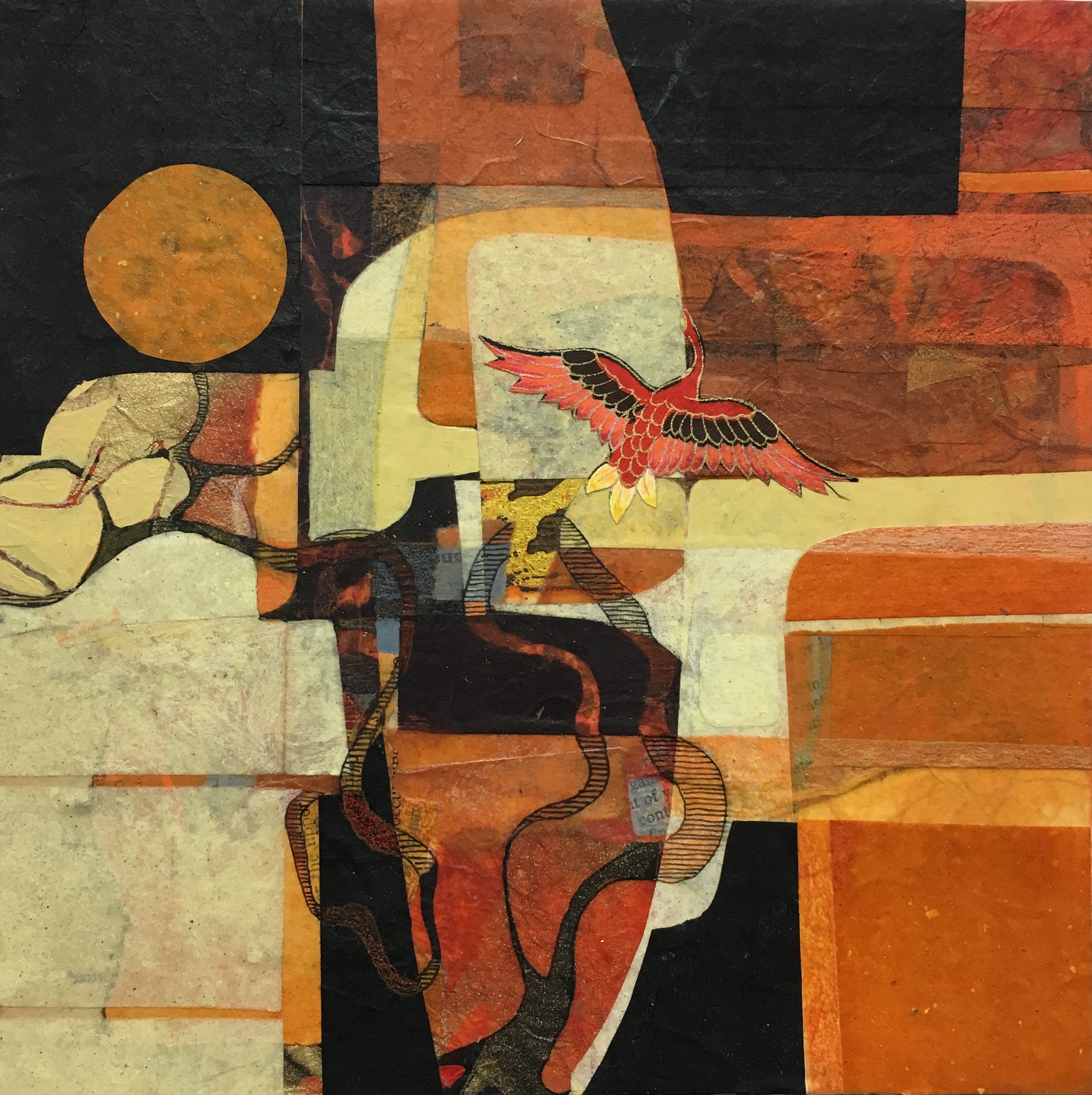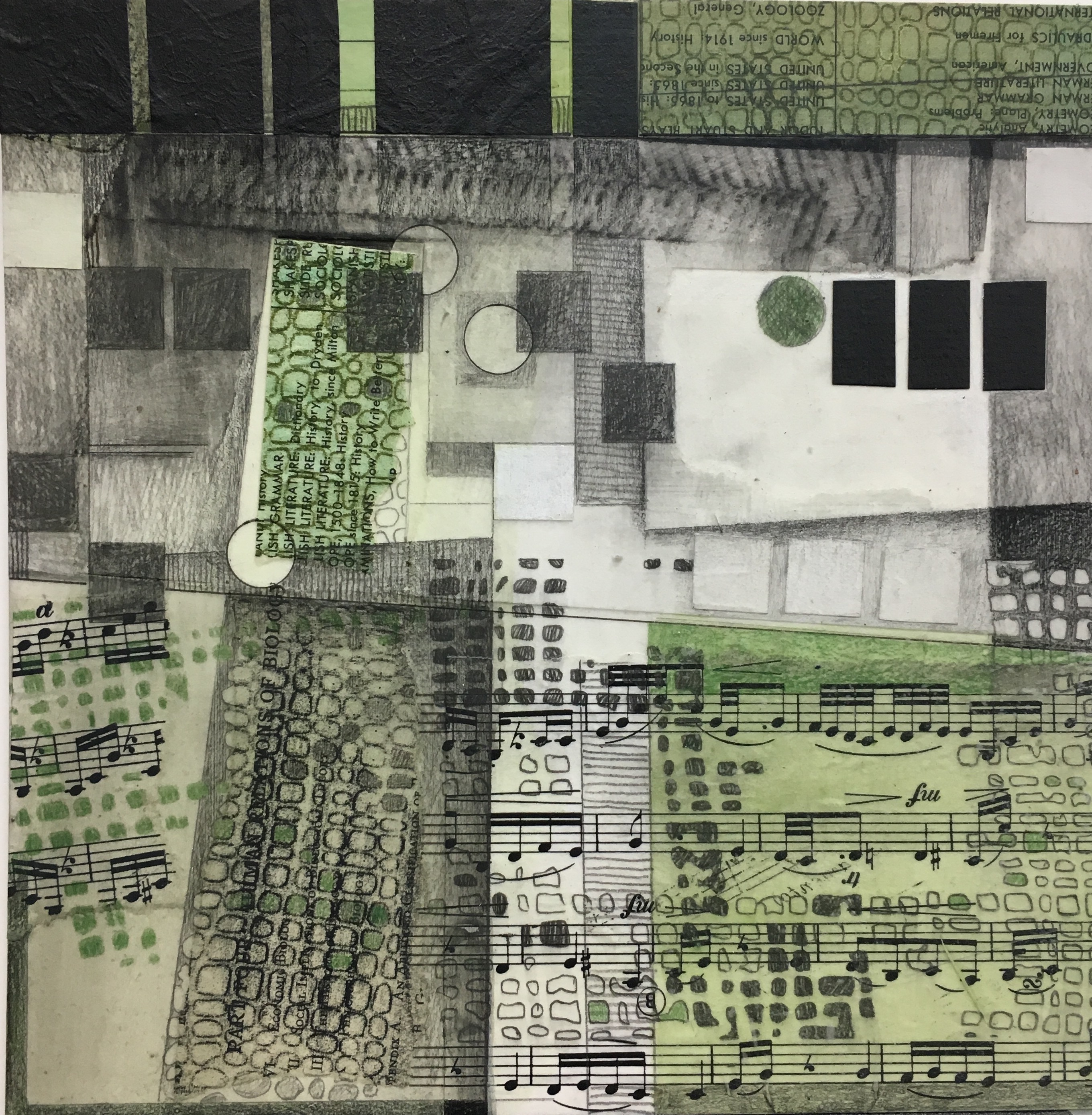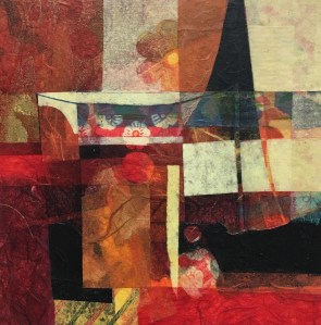 After several days spent reorganizing my studio (which caused me to become reacquainted with my extensive collection of papers….I’m a collage material hoarder), I have decided to embark upon a Weekly Collage Project. I am still not over my fascination with square compositions, as evidenced by recent series: Mindscapes (12×12), Weekly Drawings (7×7), Equilibrium series (5×5), Midnight Grove series (8×8), Blue Horizon series (12×12). Not surprisingly, I have again chosen the square format. The weekly collages are 8″x 8″, on mat board or illustration board.