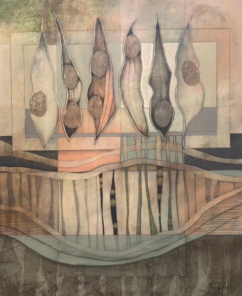 acrylic/collage/colored pencil on 12″x 12″ stretched canvas