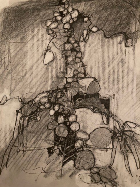 One drawing per day, no rules (media/subject matter/time spent/etc.). No purpose, beyond the pure enjoyment of making marks on the page.