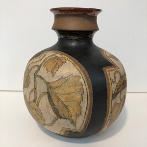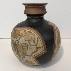 My neighbor and friend, potter Peder Hegland, and I have been having fun doing occasional collaborative pieces. He throws the pot and I either paint/draw on it after it is fired or carve into it before it is bisqued.