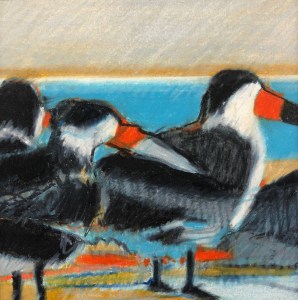 To me, the most fascinating Florida beach birds are Black Skimmers. I love their almost ungainly shape, their high contrast, graphic coloration. I love the way they hang out together in large groups, and seem to just enjoy spending time on the beach.