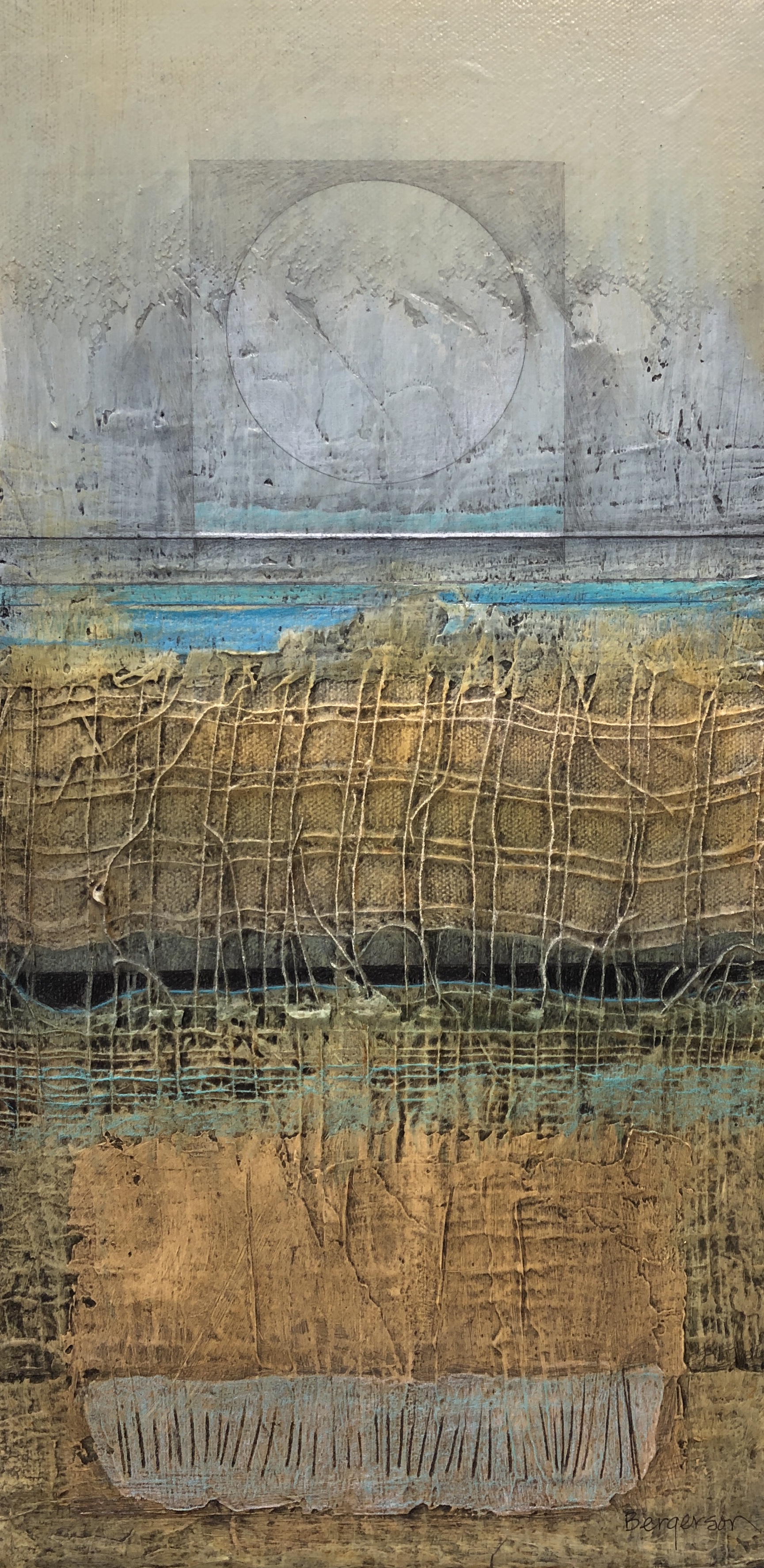 Once a week I open a specially dedicated sketchbook and do a meditative piece, a small (5″x 5″) piece, any medium or combination of media, no plan to produce a salable piece, no time restrictions, no prior planning. Just grab something that appeals to me and go with it. Sometimes I am satisfied with a piece after 30 minutes. Sometimes hours go by without me noticing the passage of time.